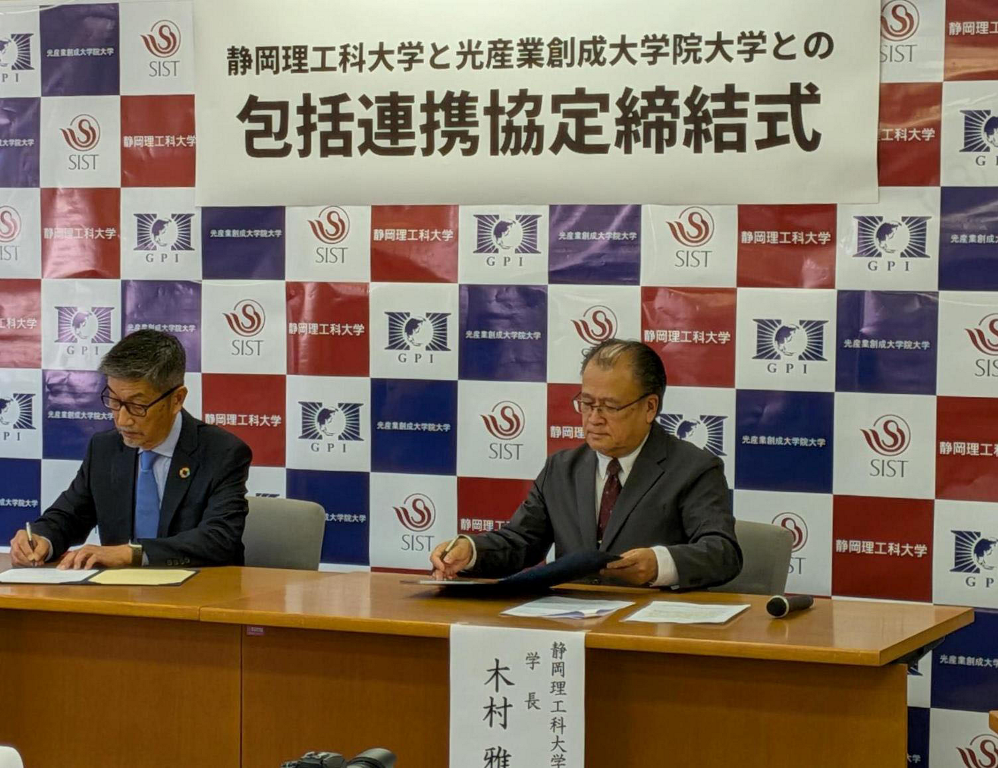 光産業創成大学院大学は、静岡理工科大学と学生教育や学術研究、産学連携など幅広い分野で協力する包括連携協定を締結しました。