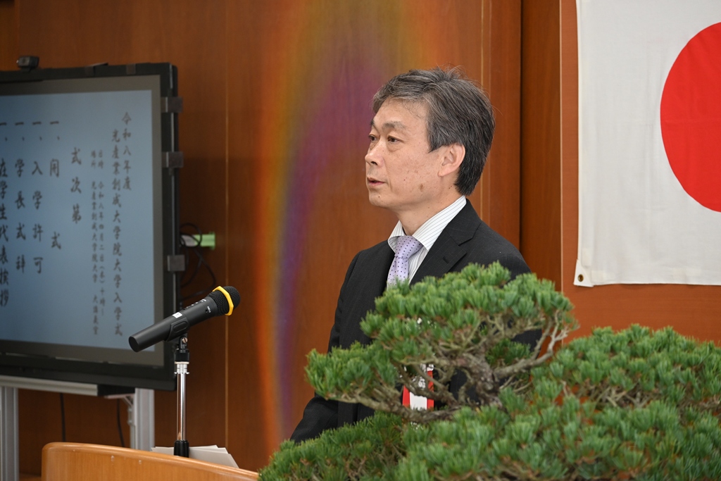 「未来は待つものではなく創るもの —— 社会のニーズを捉え、光技術によって未来の光産業を自ら切り拓いてほしい。」と、新入生の門出を祝うエールを送りました。