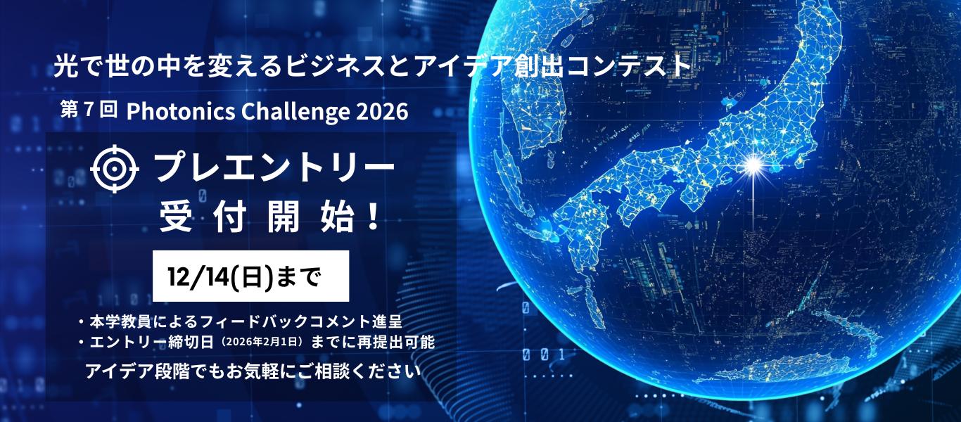 光技術や経営の専門分野に精通した本学教員陣が、プランに対するフィードバックコメントをお届けするプレエントリー制度(締切:12月14日)をご用意しています。