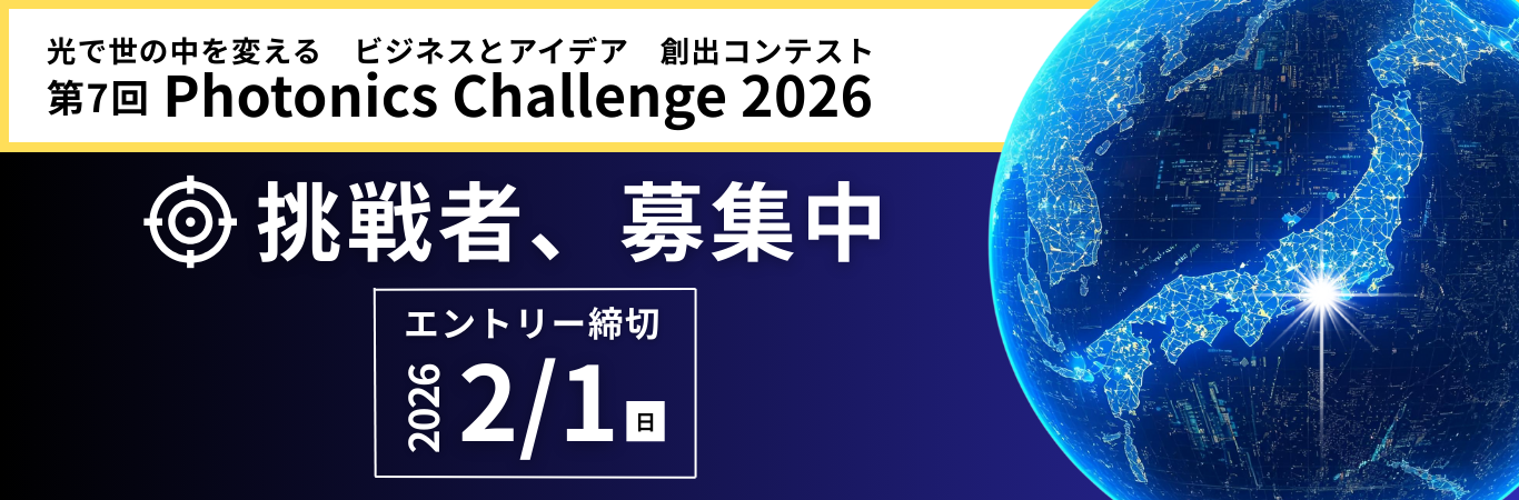 また、本コンテストには今回より、地域の光・電子技術の未来創成を支える中核支援機関「フォトンバレーセンター」が新たに協賛。産学官金のネットワークを束ねる支援機関の参画により、挑戦者の可能性をさらに大きく広げていきます。